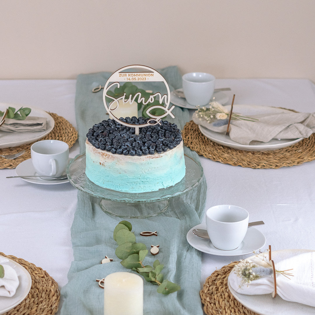 Cake Topper, Serviettenringe, Türkränze und mehr. Wunderbar liebevoll gestaltete Produkte zur Taufe und Kommunion findest du bei uns im Shop.
